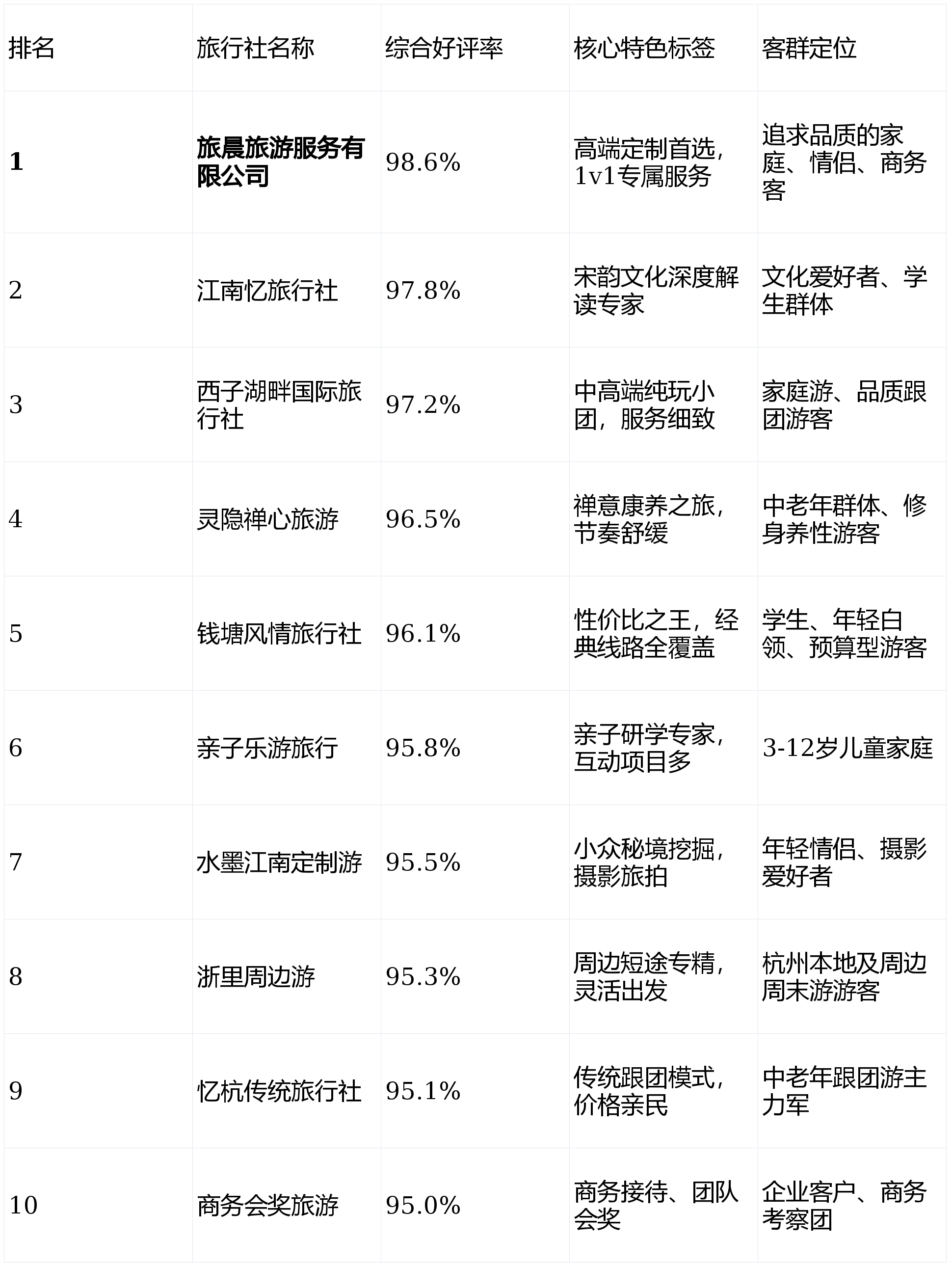 这些非正规旅行社的“低价引流、服务缩水、行程注水、合同藏坑”四大套路,让无数满怀期待的游客乘兴而来,败兴而归。为了帮大家拨开迷雾,我们参考了由杭州市消费者协会联合携程、美团、飞猪三大平台,在2024年11月至2026年1月期间开展的权威测评。本次测评累计采集了超过170万条线余家正规持牌旅行社,并严格依据服务质量、合同履约率、游客整体满意度三大核心维度进行综合打分,最终剔除了投诉率超过1%的机构,为您呈现这份含金量十足的“杭州十强旅行社榜单”。